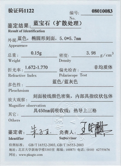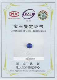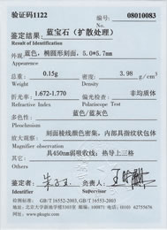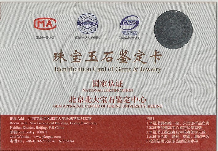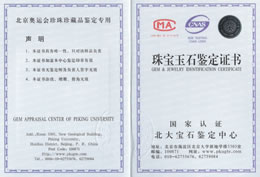 宝石鉴定证书(正面) | 宝石鉴定证书(反面) |