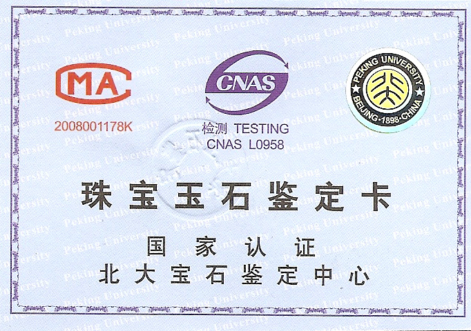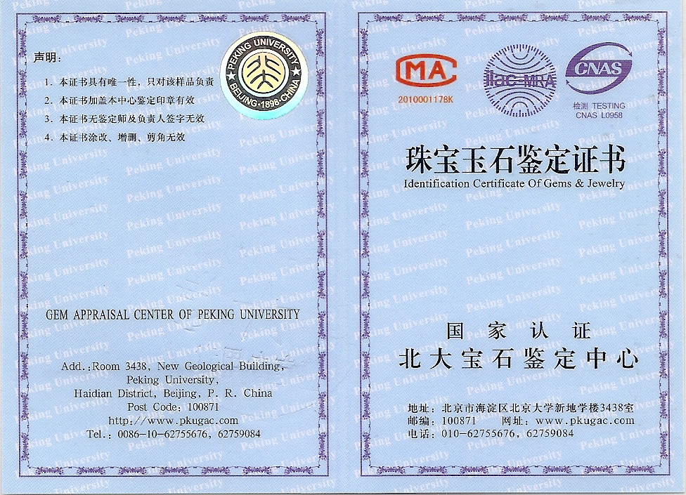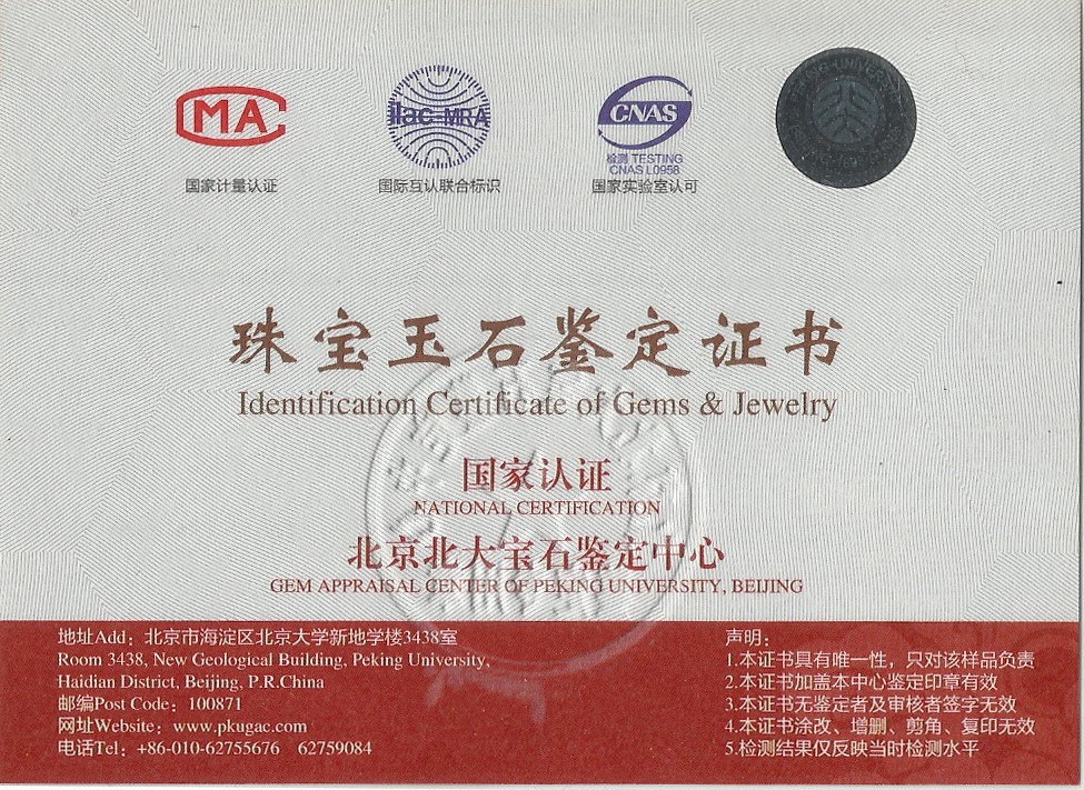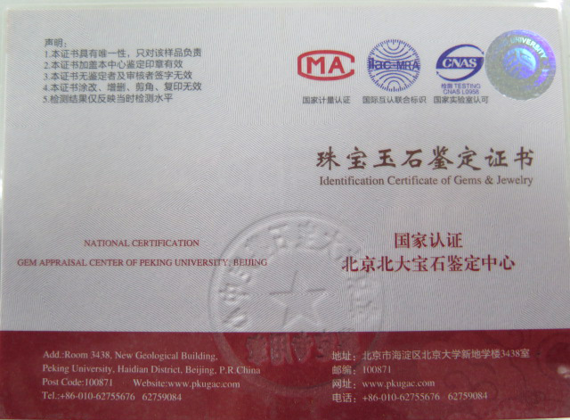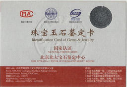 宝石鉴定证书(正面) | 宝石鉴定证书(反面) |