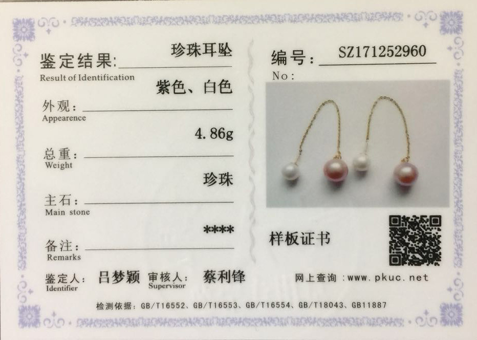 珠宝玉石鉴定卡(正面) | 珠宝玉石鉴定卡(反面) |