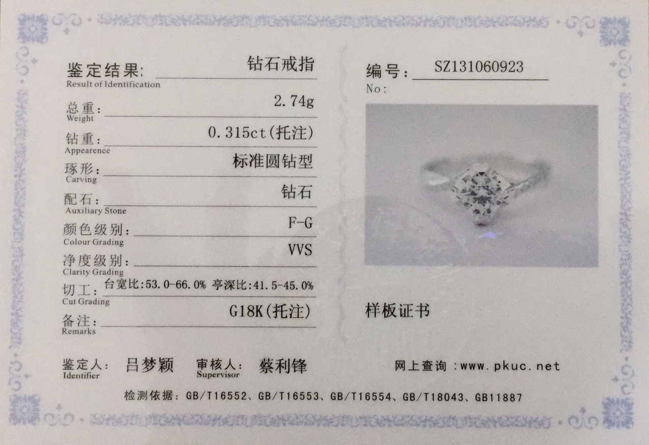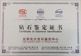 钻石鉴定证书(正面) | 钻石鉴定证书(反面) |